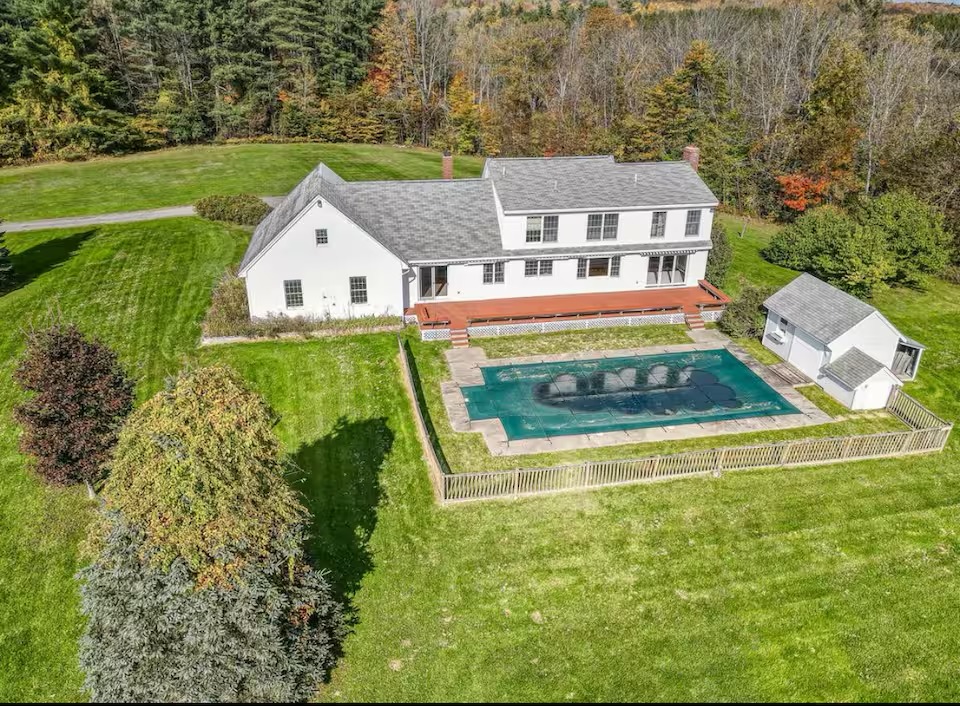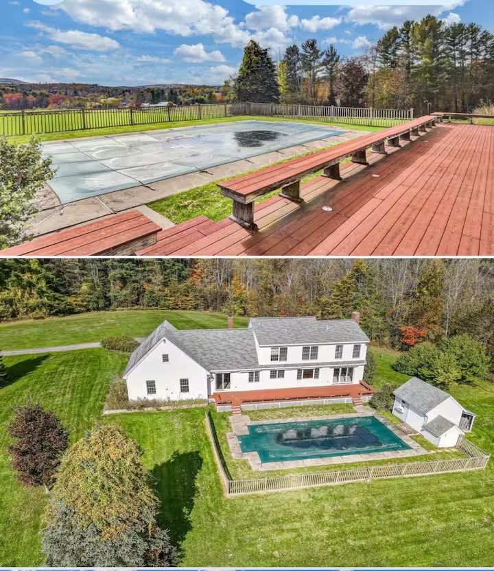 Guests can enjoy a 20 x 40 inground pool, a spacious deck for lounging, air conditioning, a bathtub, BBQ grill, and more. The property also features essential safety measures such as smoke alarms, carbon monoxide alarms, and exterior security cameras.